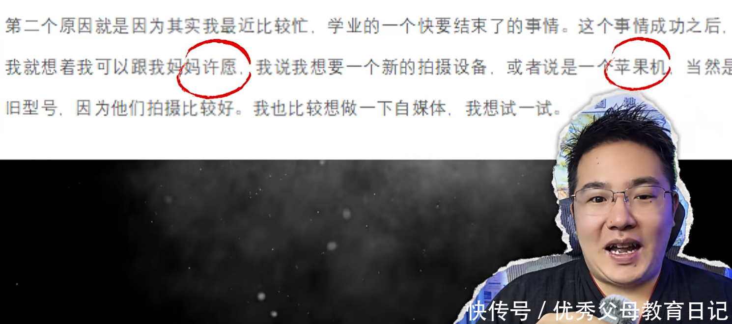 其实她并不是觉得赔偿了4000块钱的父母还是不够爱他,他只是想暗示自己的父母,今年他还想要一个苹果的电子产品。